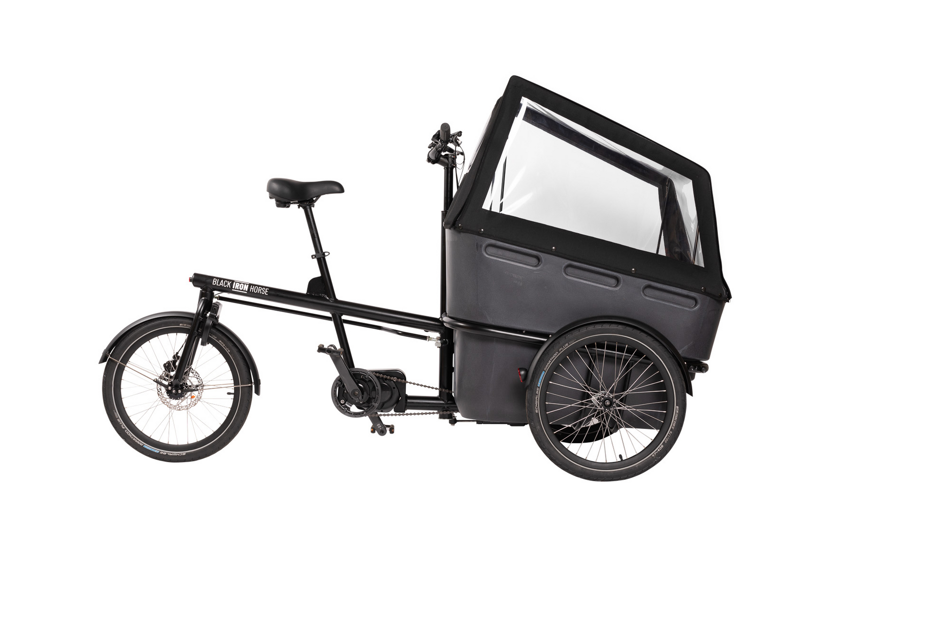 PONY er til familier med større børn, eller familier som gerne vil have en voksen siddende i kassen. Cyklen har som standard en aluminiumsplade, to ryghynder samt en madras der dækker hele gulvet, for at sikre god komfort. Der er som standard en 2 punkts voksensele med og mulighed for at opgradere til to 2 punkts barneseler.