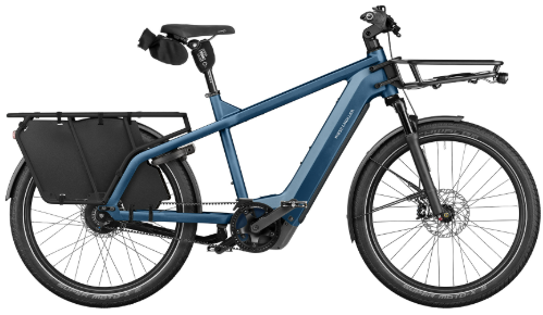 Multicharger3 Vario har en velafbalanceret geometri og en affjedret forgaffel, som hjælper med at absorbere ujævnheder på vejen, hvilket giver en mere komfortabel og kontrolleret kørsel. Den rummelige bageste lastramme og frontbagagebærer giver fleksible transportmuligheder, så du nemt kan tilpasse cyklen til både hverdagslogistik og weekendture.